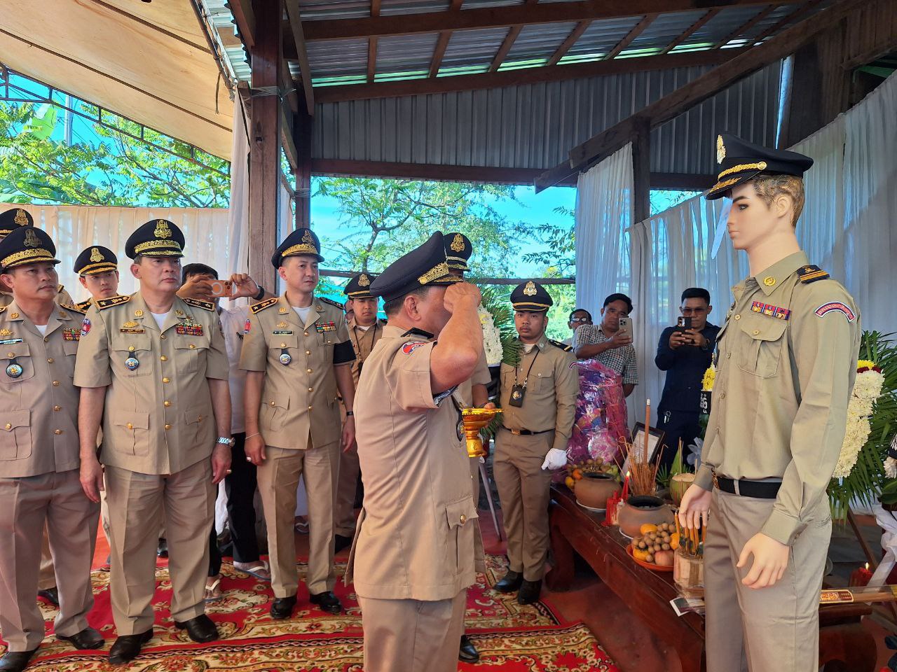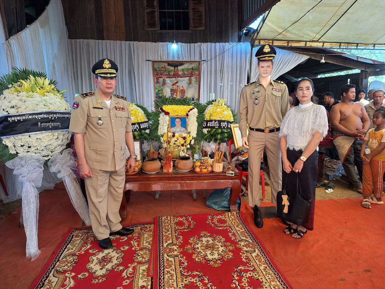 មណ្ឌលគិរី) រសៀលថ្ងៃទី១២ខែតុលាឆ្នាំ២០២៥ លោក ឧត្ដមសេនីយ៍ទោ អ៊ុំ សាត អនុប្រធាននាយកដ្ឋានចារកម្មក្រសួងមហាផ្ទៃ អមដំណើរដោយ លោកឧត្ដមសេនីយត្រីគីសុវណ្ណារ៉ា អនុប្រធាននាយកដ្ឋាន លោកឧត្តមសេនីយ៍ត្រី សុខ លីដា អនុប្រធាននាយកដ្ឋាន ព្រមទាំងមន្ត្រីស្នាក់ការទាំងអស់នៃនាយកដ្ឋានចារកម្មក្រសួងមហាផ្ទៃបាននាំយកថវិការចំនួន៨.៦៥០.០០០និងប្រាក់ដុល្លា១.០០០ដុល្លា ក្នុងនោះថវិកាសមាគមន៍មិត្តនគរបាលចំនួន ៦លានរៀល និងថវិការបស់នាយកដ្ឋានចំនួន១ពាន់$និងប្រាក់រៀល២លាន ៦៥ម៉ីន មកជូនដល់គ្រួសារសពលោក អនុសេនីយ៍ទោ យឿន សុជា ដែលបានទទួលមរណៈភាពកាលពីថ្ងៃទី១០ខែតុលាឆ្នាំ២០២៥នៅមន្ទីរពេទ្យបង្អែកខេត្តរតនគិរី ដោយសាជម្ងឺគាំងបេះដូងសពត្រូវបានគ្រួសារយកមកធ្វើបុណ្យតាមប្រពៃណីនៅភូមិទួល ឃុំស្រែសង្គម ស្រុកកោះញ៉ែក ខេត្តមណ្ឌលគិរី។ ក្នុងឱកាសនេះដែរលោកឧត្តមសេនីយ៍ទោ បានធ្វើការគោរពវិញ្ញាណក្ខន្ធសពនិងបំពាក់ឋានន្តរសក្តិមន្ថែមជូនលោក អនុសេនីទោ យឿន សុជា និងបានប្រគល់បឋកថាដែលជាជិវប្រវត្តិការងារនិងស្នាដៃរបស់លោក យឿន សុជា ដល់គ្រួសារលោកដោយផ្ទាល់ព្រមទាំងចូលរួមដង្ហែរសពដាក់តម្កល់លើមេណនិងធ្វើកិច្ចបូជានៅម៉ោង៧.៣០នាទីយប់។